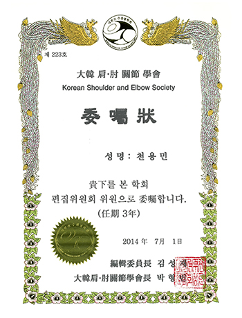 - 대한견주관절학회 회원 (active member)