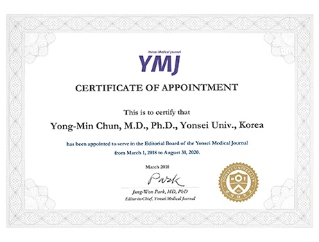 - Editorial board of Yonsei Medical Journal (2012. 9. - present)