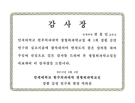 - 2003 연세대학교 의과대학 정형외과학교실 임상강사