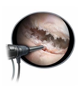 1관절경(내시경)으로 병변 부위 관찰 손상된 연골을 정리