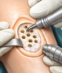 비교적 작은 연골 결손일 때, 체내 재생을 유도하는 단순하고 부담이 적은 수술입니다.