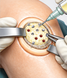 3줄기세포 제제(카티스템)를 병변 부위에 채워 넣고 고정 한다.